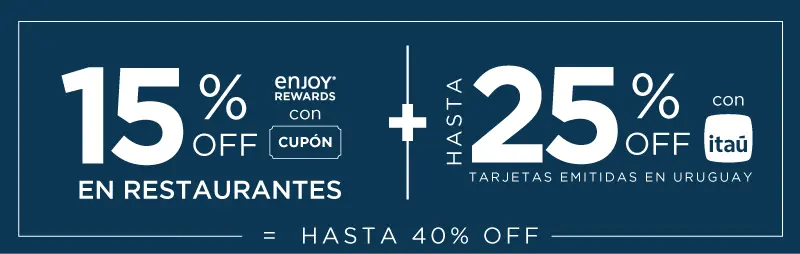Válido de segunda a quinta-feira, sujeito à disponibilidade no momento da reserva. Não é válido para funcionários da Enjoy Punta del Este. Válido de 30 de março a 30 de abril de 2026.